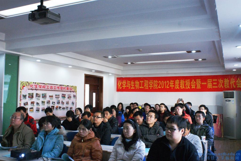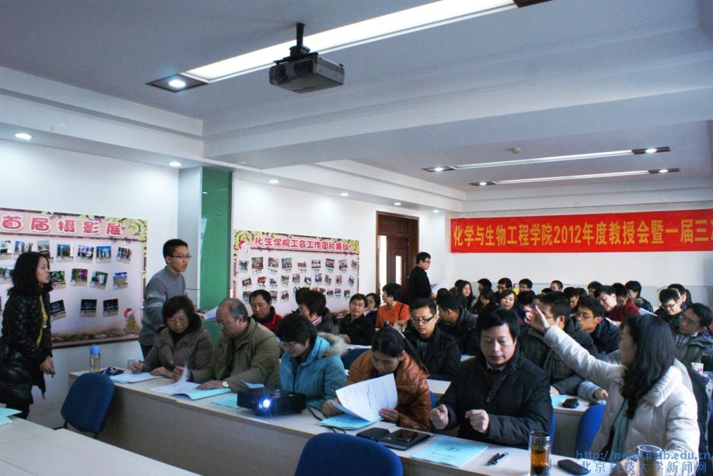 发布时间:2014-12-01 作者: 访问量:化学与生物工程学院2012年度教代会暨一届三次教代会于2012年12月24日下午2:00在实验楼416举行,学院班子成员、教授会成员、教代会代表、学生代表出席了会议。学校组织部和纪委委派两名老师参会并监督领导班子测评环节。会议听取了学院2012年度工作述职,对学院班子和班子个人进行了测评,与会代表审议了学院“十二五”规划终稿,学院2012年工作总结、学院工会2012年总结、学院财务报告。