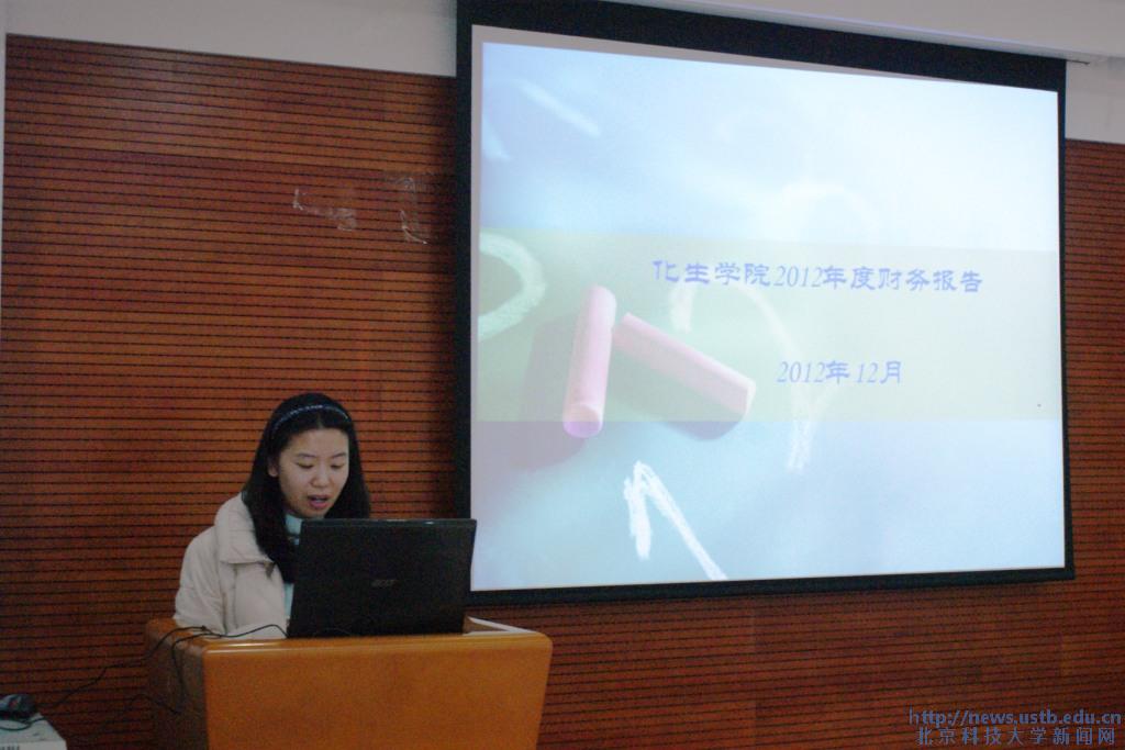 弓爱君书记代表学院班子对学院2012年度工作进行了总结述职,弓书记重点提出学院文化建设,对院徽、院旗、院训的涵义进行了阐述。刘雨芙副院长对学院一年来的财务收支情况进行了汇报。