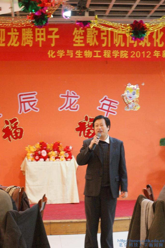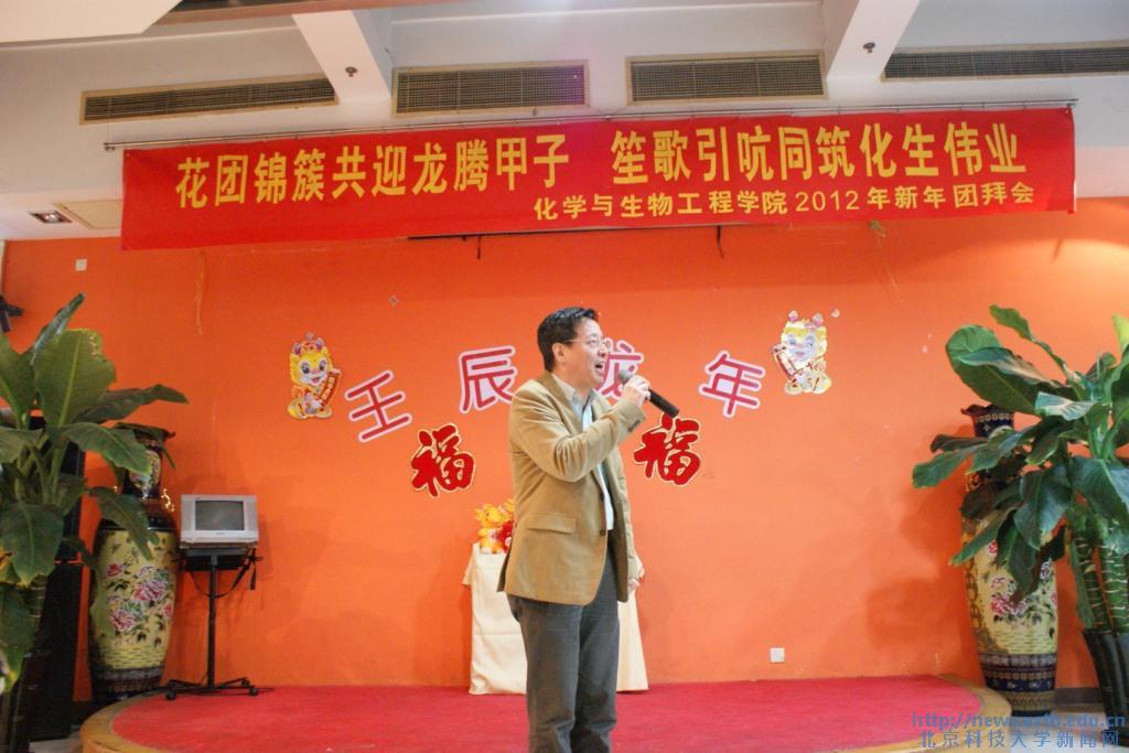 化学与生物工程学院2012年新年团拜会于12月21日晚在万秀园四层举行,校党委书记罗维东教授、校长助理朱鸿民教授、学校各机关部处领导、356488.com领导班子及全体教职员工出席了团拜会。会议由学院副院长刘雨芙主持。
