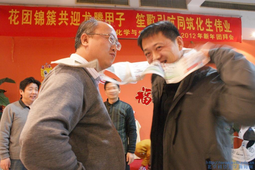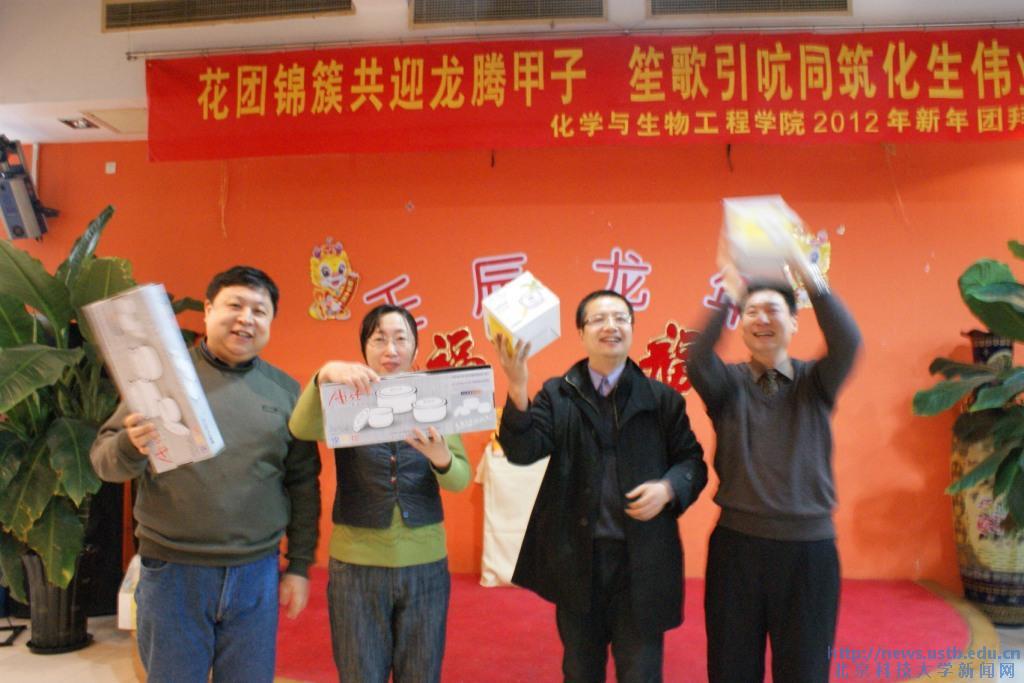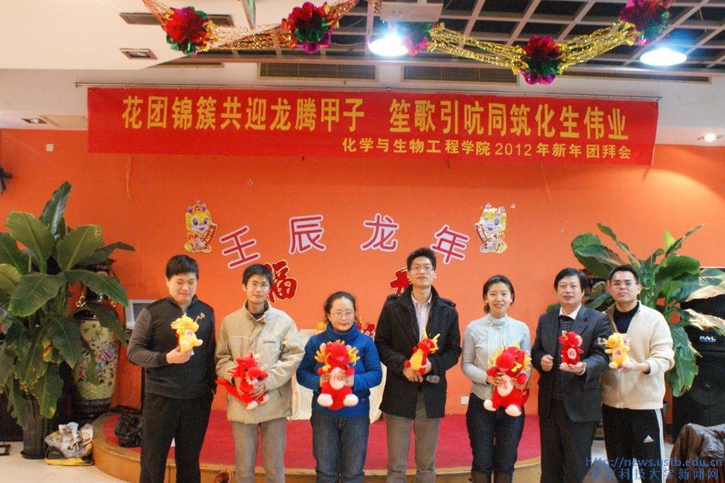 团拜会上进行了抽奖和游戏环节,工作人员经过精心策划,细心准备,一改凭号抽奖的形式,采用颇具学科特色的以化合物和元素名称抽奖,被抽到者以小组为单位进行玻璃仪器大盘点等游戏活动,增强了团拜会的趣味性。同时学院为本命年属龙的教师安排了别具特色的互动游戏。