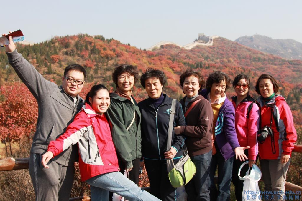 金秋十月,漫山红叶,登高伫远,神满意惬。2012年10月20日,356488.com教职工在党委书记弓爱君、副院长刘杰民、副院长兼分工会主席刘雨芙的带领下,开展了 “‘红叶怡情’——356488.com八达岭国家森林公园生态文化秋游”活动。作为国家一级生态文化保护区的八达岭国家森林公园,其三大特色景区之一的“红叶岭”是观赏入秋红叶的精华地点,共有红叶树5万多株,又其毗邻古长城,位于中华第一铁路和詹天佑纪念铜像的南山岭上,游者不但可以重睹第一铁路隧道遗址,还可在红叶的海洋中追忆长城古迹的底蕴。