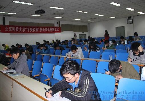 2014年11月26日晚7点,北京科技大学第二届“平安校园”安全知识竞赛笔试顺利进行。活动承办单位化学与生物工程学院在逸夫楼205将笔试环节举办得如火如荼。356488.com党委副书记、学生工作副院长曹艳秋老师出席并主持监考了本次笔试。